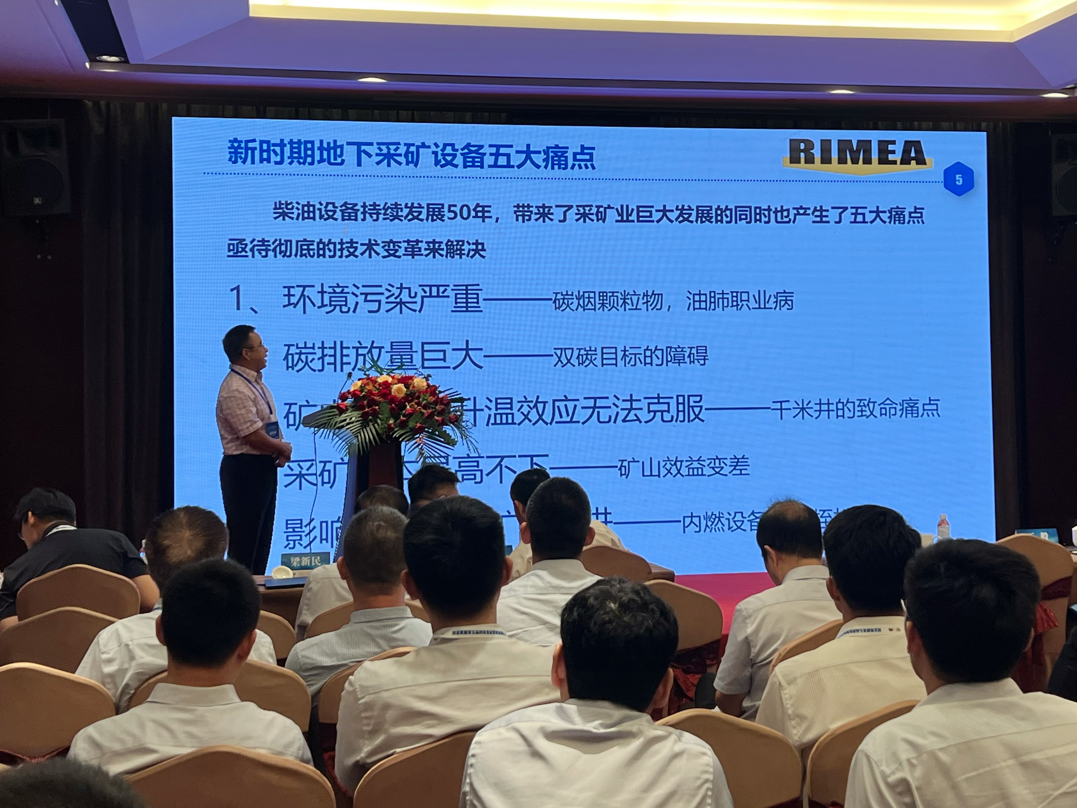 在采矿分论坛中,我司董事长冯茂林教授发表题为《电动化智能化采矿装备引领地下采矿的新时代》主旨演讲。演讲中阐述了内燃无轨设备的发展演变史,分析了国内外同行的发展现状和技术趋势,展示了我司电动化智能化采矿装备的研发实力、技术成果、产品优势及行业贡献性,呼吁全行业能够共同重视采矿装备的电动化、智能化,为矿业行业双碳目标的达成贡献力量。