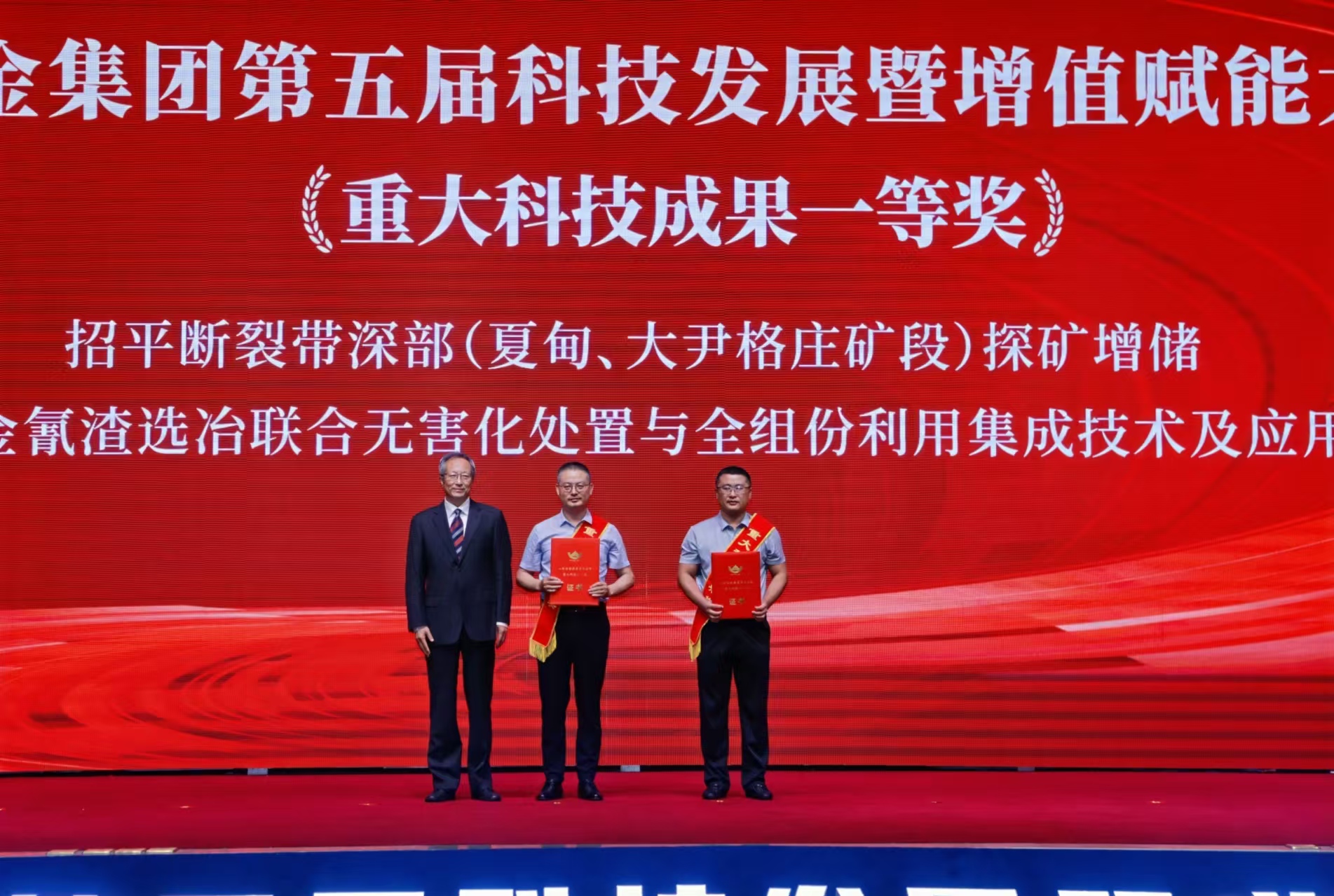 大会还对招金集团重大科技成果一等奖、二等奖,科技创新先进集体奖、地质探矿金锤奖、科技创新先进工作者奖进行颁奖。