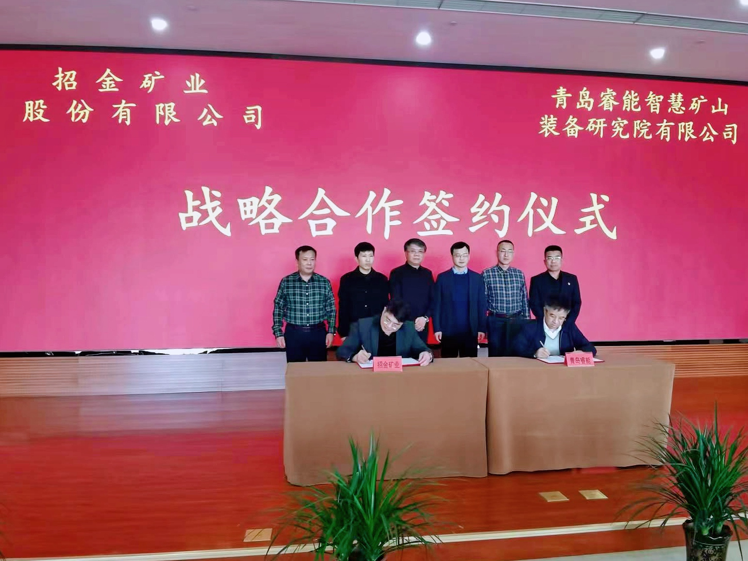 青岛睿能智慧矿山装备研究院有限公司(以下简称:睿能智造)与招金矿业股份有限公司(以下简称:招金矿业)战略合作签约仪式于2023年12月1日上午10时在招金大厦五楼第二会议室举行。