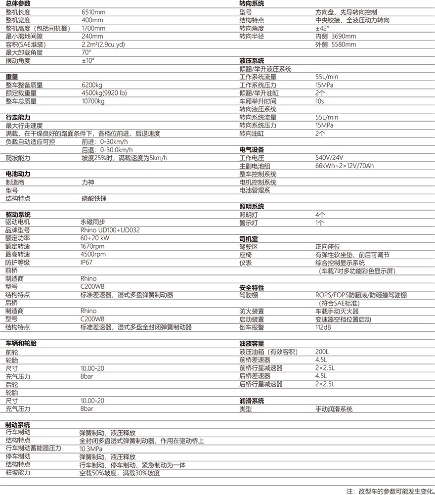 产品采用高质量同步永磁电机直接驱动车桥,传动系统简单高效,没有了柴油机和变速箱的动力系统可靠性显著提高。液压油泵采用了负载启动控制技术,减少液压系统的无用功消耗,同时提高液压系统寿命和可靠性。整机运行保养维护简单,能耗和备件运行成本大大降低。